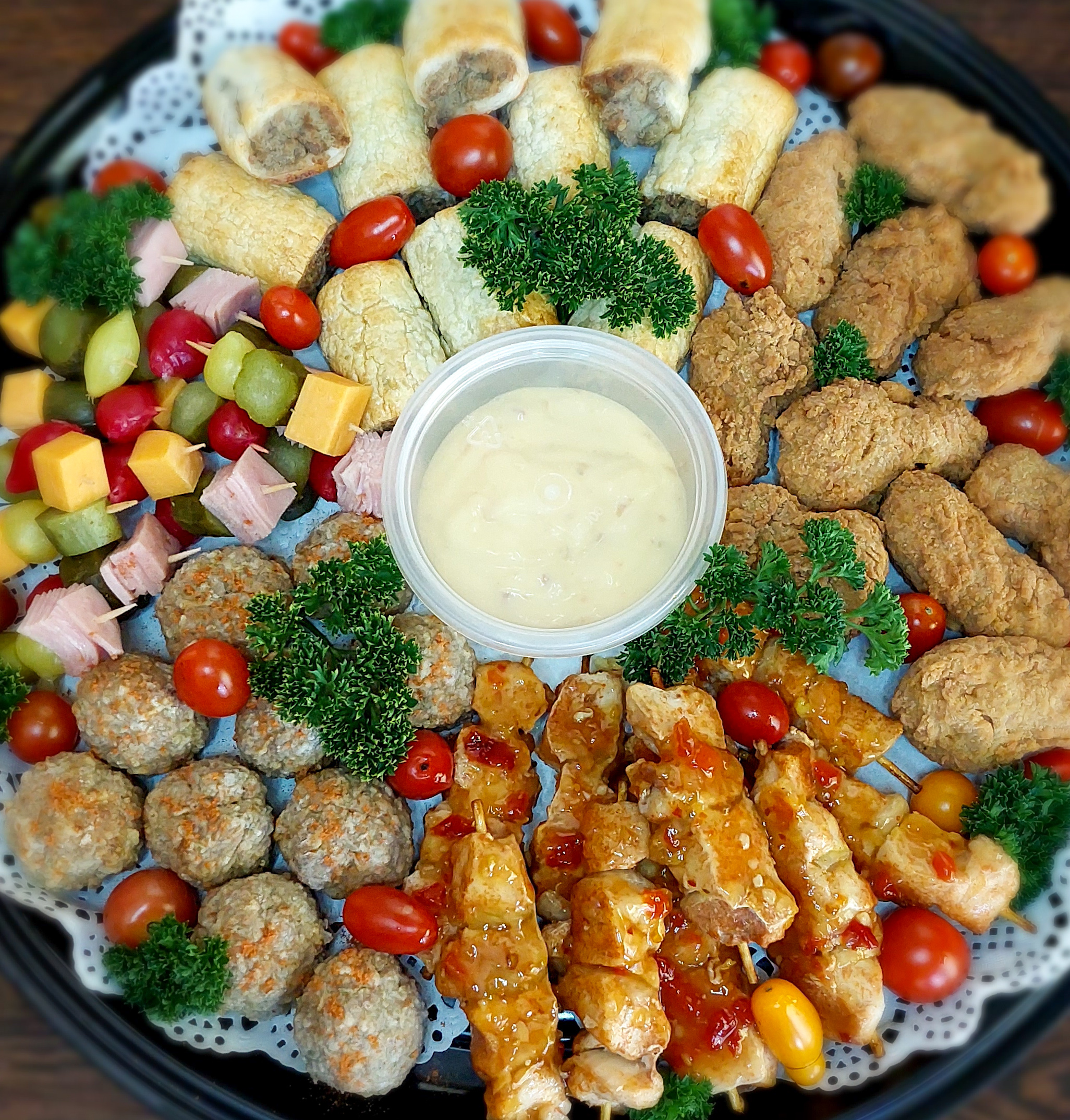 Frikadelle, kaas worsies, "cocktail" sosaties, kaas en hoender happies